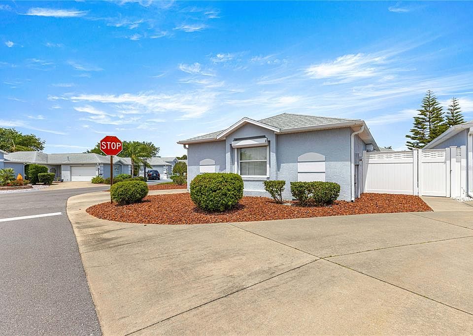 OWNER MOTIVATED! BOND PAID! Welcome to your perfect Florida retreat! Nestled in the highly sought-after Villa Valdosta neighborhood within the Village of Bellaire, this 2-bedroom, 2-bath home offers the ideal blend of privacy, functionality, and comfort — all on a spacious corner lot. Step inside to discover a bright, open layout that makes everyday living a breeze. The home boasts a recently replaced ROOF in 2021 and HURRICANE SHUTTERS, offering peace of mind and year-round protection. The PRIVATE YARD and enclosed courtyard create a serene, pet-friendly space — Whether you're entertaining guests or simply enjoying your solitude, this space delivers. The home is adjacent to visitor parking, so don't be afraid to invite your friends. Located close to everything The Villages has — from golf courses and recreation centers to shopping and dining. This home will not disappoint and is PRICED TO SELL, be sure to add it to your list. ALL FURNITURE CONVEYS WITH HOME.