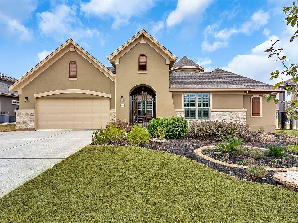 Taylor Morrison Buckingham floorplan with enhanced stucco front elevation and upgraded stone. One story plan with 4 bedrooms and 3 bathrooms, courtyard entry with wrought iron gate and fireplace. Covered rear patio, bay window option in the master bedroom & breakfast area, utility sink, chefs kitchen with upgraded cabinets, granite counters, stainless steel appliances, under cabinet lighting, wood flooring and surround sound pre-wire. Buyer to verify all information herein with the builder.