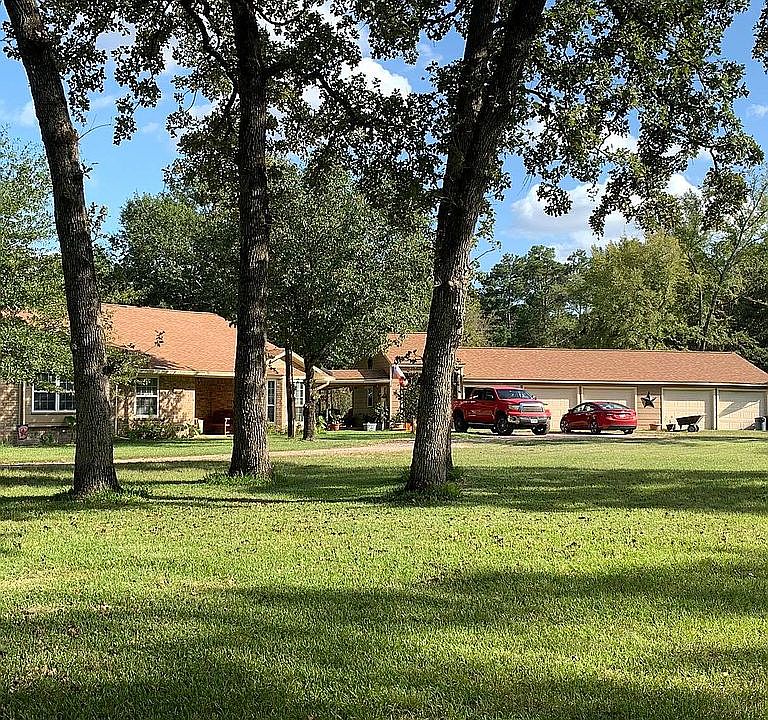 Beautiful home nestled between trees. 6 car garage , pond, updates floors and bathrooms.. 5 acres of unrestricted property.