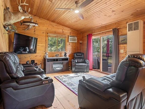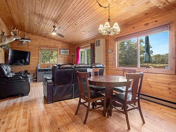Well Maintained "inside and out" 2 bed, 1 bath year-round cabin awaits sold turn-key w/all furnishings, kitchen appliances, floor coverings and wall decor. "Home Away from Home" on Private Lake Lucerne. Nice open floor plan bedrooms & bath off main living. Beautiful Hardwood Floors throughout. Knotty Pine Interior Walls and Ceiling gives such a nice warm feel. Kitchen granite counter top, cupboard pull outs, *Bonus extra moveable counters with drawers/storage will stay and table w/4 chairs! Property sits on a nice wooded lot with 200ft of west facing lake front. Dock w/bench seat, Pontoon & Trailer Stays! Fishing is great all year round, Snowmobile/ATV trails right by property for quick access. 30x22 Detached Garage is perfect for all your cabin items and lake toys. Property provides lots of space for parking. MUST SEE!! Newly installed Roof 2022, Leaf Guard Gutters 2022, Well 2022, Septic Pumped Aug 2025, Close to nearby town for gas and restaurants "Cabaret & Webb Lake Tavern, just to name a couple". One of the best area's in WI....Schedule your showing today!