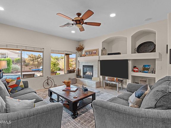 Beautiful 4BD/2BA home in the sought-after Shamrock Estates with 2,348 sqft of open living space. Features include 9ft ceilings, abundant natural light, and an electric fireplace in the living area. Kitchen offers a full-size pantry, gas range, granite counter tops and it overlooks the spacious great room—perfect for entertaining. The primary suite boasts two walk-in closets (his & hers) and a luxurious soaker tub. Enjoy your backyard oasis with mature landscaping, a see-through fence, covered patio, sparkling pool and spa, and a self-closing, self-latching lock on the Arcadia door for added safety. Additional highlights include an RV gate, 2019 water heater, and a soft water system. Located in a well-maintained HOA community near parks and schools. Move-in ready and full of upgrades!