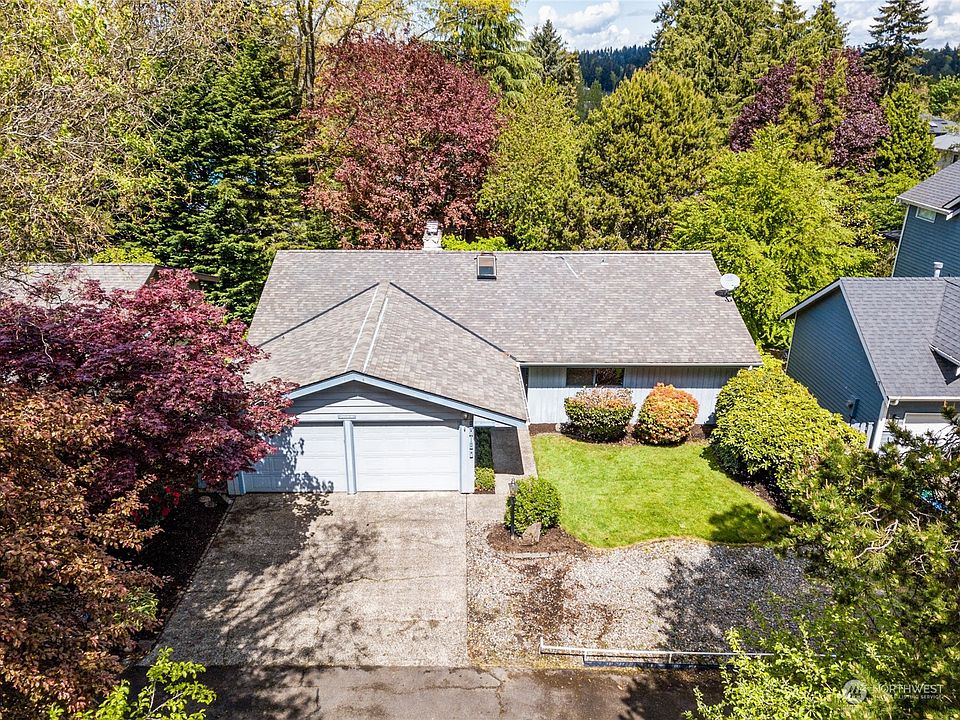 Welcome home to this exceptional, well-maintained & updated residence, conveniently tucked away on a quiet, private road with local-access only. The open concept living room possesses a vaulted, grade-A redwood ceiling & a stone fireplace. The kitchen basks in an abundance of natural light via a skylight, & boasts granite countertops & all-new stainless steel appliances! There is a separate lower-level family room (also with a fireplace) and an adjacent office space. Other home amenities are comprised of: A fully renovated primary bath, new flooring throughout, new quartz countertops and sinks in two bathrooms and laundry room, new boiler/furnace, fully-fenced backyard, spacious interior shop, RV parking, new gutters/downspouts. No HOA.
