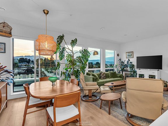 Spacious 2 bed, 2 bath penthouse condo in the George by Marcon in Port Moody. Enjoy the spectacular sunsets and Mountain views ( partial ocean views) from the large balcony. Open floorplan with high ceilings and great light! Air conditioned. Full sized stainless steel appliances including a gas stove. Tons of storage! Motorized roller blinds throughout. Blond oak laminate flooring. Both bedrooms are large enough for a king sized bed and have spacious walk in closets. Primary bedroom is ensuite with radiant in-floor heating and double vanities. Laundry room has side by side washer and dryer. Two parking stalls and a large private storage room. Located just 5 minutes away from both Moody Centre SkyTrain Station and the West Coast Express. Balance of new home warranty. Pet friendly building.