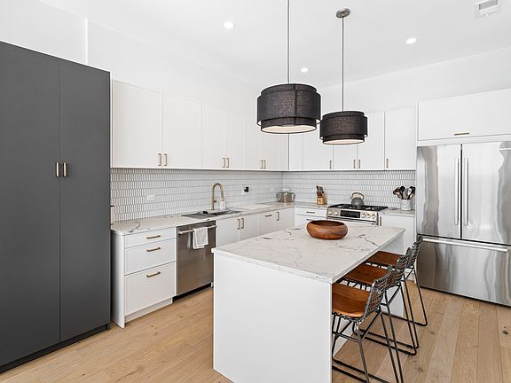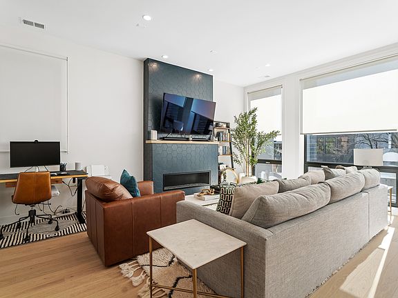 This sought-after Lyndale Trio, in Logan Square, steps away from Palmer Square Park, Farmers market, and some of the finest dining and shops in the City. This 3rd Floor home features 2-bedrooms with walk in closets, a custom murphy bed included ,2- baths include steam shower porcelain tile and heated floors, hardwood floors, large living room with a fire place, a entertainment kitchen of your dreams with a full size island, Bosch appliances. The large rooftop deck with views of the Chicago Skyline and Navy pier fireworks a rooftop bar and surround sound though out unit. Make this amazing home yours for the holidays.