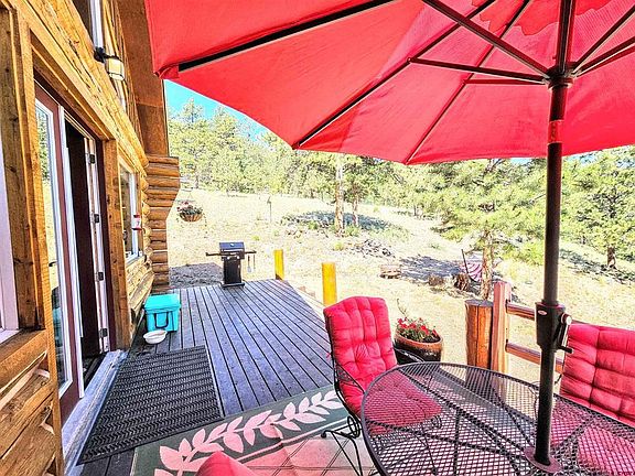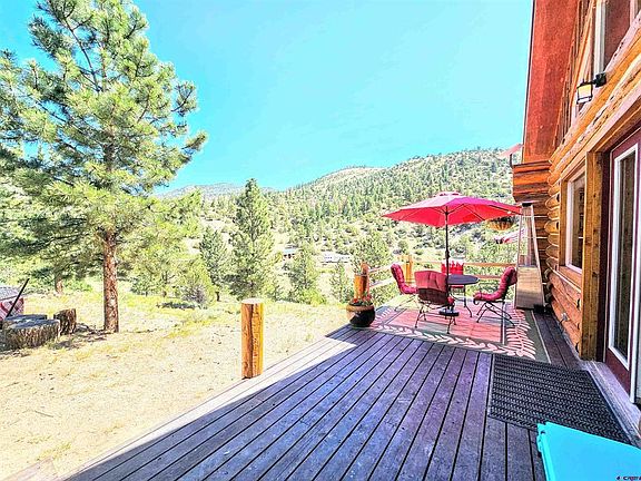 Welcome to your dream mountain retreat! Nestled in the picturesque mountains north of Saguache, Colorado, this enchanting log cabin is a hidden gem. Situated on a sprawling 10-acre patented gold mining claim, this property offers a unique blend of natural beauty, seclusion, and adventure. The home was designed and built by Frontier Homes of Montrose in 2012. As you approach the cabin, you'll be captivated by its rustic charm. is cozy two-bedroom, one-bath home exudes warmth and character. Step inside, and you'll find a thoughtfully designed living space that seamlessly blends modern comfort with mountain living. Solar electricity powers this mountain sanctuary, making it both self-sufficient and environmentally friendly. The home will be conveyed to you fully furnished and accessorized, making it ready for you to move in and start enjoying the serene surroundings right away. The home features large, double-paned windows with pull-down shades to showcase the view up the valley while the abundant natural light floods the interior, creating a warm and inviting atmosphere. French doors lead out onto a gorgeous deck that connects the indoor and outdoor spaces seamlessly. Additionally, the main entrance features a magnificent 9-foot glass door, making a statement while allowing more light to filter in. The porch comes furnished and ready to enjoy with an outdoor patio table, four chairs, an umbrella, a decorative gas patio heater, and a KitchenAid freestanding outdoor grille. The kitchen features a Quartzite island and two barstools, custom kitchen cabinets with slow-closing doors and woodland-themed drawer pulls, undercabinet LED lighting, and propane appliances including a propane refrigerator a propane gas range/oven Upstairs, via a concealed, drop-down ladder, you’ll find a spacious loft with two twin sized beds and plenty of space for games or crafts. The loft overlooks the main living area and features gorgeous, hand-hewn railings and spindles. A nice closet offers storage, and window allows ample light and air-flow, making this space a non-conforming 3rd bedroom (due to the stairs). Imagine waking up to breathtaking views of the surrounding National Forest, with the tranquil sounds of nature echoing through the air. With the property bordering the National Forest on three sides, you'll have direct access to miles of pristine wilderness to explore. Multiple gates around the three-acre fenced area create an equestrian paradise, providing ample opportunities for horseback riding adventures. For those passionate about horses, this property is a dream come true. The luxury equestrian setup includes three acres of fenced land surrounding the cabin, offering ample space for your equine companions to roam freely and graze in the fresh mountain air. Additionally, there is a one-acre corral already in place, with the option to expand using the extra paneling provided. Convenience is just a short drive away, as the cabin is only a 15-minute drive from the town of Saguache on year-round, county-maintained roads. You'll have the best of both worlds—peaceful seclusion in the mountains and easy access to essential amenities. Water is not a concern on this property. A water trough with a spigot is conveniently located at the corral, ensuring your horses stay hydrated. Another water trough can be found inside the three-acre fenced area, providing convenience for both you and your four-legged friends. Outside the cabin, you'll find a 39'x32' wooden Pole Barn / Carport with a large, secure shed. There is plenty of room for four full-sized vehicles in the main section and a number of ATVs and side-by-sides in the smaller section. Inside the secure section, you'll find the batteries for the solar PV system and ample storage for outdoor equipment and tools. Limited Space for description - SEE MORE in Dee'ss Blog Post in the non-branded virtual tours section of this listing.
