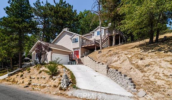 This beautiful FULLY FURNISHED bi-level home is nestled in Running Springs within the San Bernardino National Forest, and as soon as you lay your eyes on it, you’ll immediately recognize the owner’s true “Pride-Of-Ownership.” Here are just a few of its many other fine features: Custom double doors swing open to a flowing 2,424 square foot open concept floor plan that is in “Move-In-Condition” with recessed lighting, a designer paint scheme, and a complementary blend of plush carpet and laminate flooring. The stairs bring you up to the spacious living room with direct deck access, a majestic gas-burning fireplace with raised hearth, and entertainer’s wet bar with custom pendant lighting. The family’s cook is going to fully appreciate the kitchen’s large garden window, abundant cabinets, ample Corian counters, durable dual basin stainless steel sink, built-in appliances, breakfast bar, and the convenience of the adjoining dining area. Since the family room with its bright skylight, direct deck access, and stacked stone gas-burning fireplace with raised hearth flows seamlessly with the dining area, you’ll find it easy to serve and entertain your guests simultaneously. All 3 bedrooms have efficient mini split AC units. The grand suite also has a large skylight, walk-in closet, and a beautifully appointed bathroom with large dual sink mirrored vanity. The bonus room could be used as your 4th bedroom or office. There is a total of 2.5 bathrooms and functionally located laundry room with handy utility sink. Energy efficient dual pane windows will help keep your utility bills low. Plenty of secure parking on the concrete driveway and in the 2-car direct access garage. All of this sits on a large 9,940 square foot lot that is minutes away from restaurants, Running Springs Fine Foods, the Farmers Market & Artisan Faire, Santa’s Village, Big Bear, Lake Arrowhead, and Snow Valley Ski Resort. Perfect to use as vacation home or use it as Airbnb if it is not used by the owners. Sellers are planning to do a 1031 Exchange. Buyer to cooperate with sellers' 1031 Exchange at no cost to buyer.