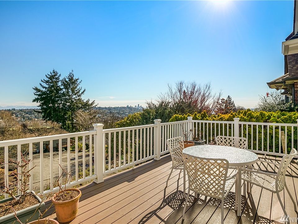 Light-filled & comfortable! Enjoy sunrises in the morning & City lights at night! Enjoy the ease & convenience of this tastefully updated home: level access from the 2-car detached garage to the open kitchen & family room, large & versatile living spaces with panoramic easterly view, circular floor plan & space to entertain! Private master suite + 2 bedrooms upstairs. Large front deck, private back patio & sweet garden spaces. Centrally located with easy access to the Village, Interbay & DT!
