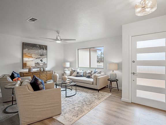 Light and bright 4 bedroom home centrally located within Santa Fe. The open floor plan is great for entertaining! This designer inspired home has new luxury vinyl floors, new cabinets, granite countertops, new plumbing and lighting fixtures, also a new furnace and hot water heater. The backyard is fenced with mature trees and views of the Sangre De Cristo Mountains. Both front and back yards are beautifully landscaped. This home is complete with new windows, propanel roof, and stucco!