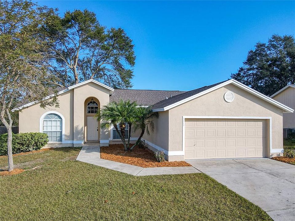 One or more photo(s) has been virtually staged. MOVE RIGHT IN !! This wonderful 4 bedroom/2 bath home has so many NEW things !! BRAND NEW Hot Water Heater, Brand new stainless appliances---double door frig, glass top range, built -in microwave, and quiet dishwasher. The ENTIRE house has BRAND NEW beautiful Engineered hardwood floors, and brand new bathroom sinks and faucets. BRAND NEW paint job---both the entire INTERIOR AND the the entire EXTERIOR Roof is only 2 YEARS OLD and A/C system has been well maintained and serviced, and newer garage door opener. This home features a large back yard which is very private--OVERLOOKING A SMALL POND...no backyard neighbors.