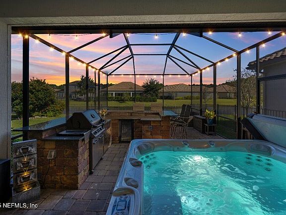 Beautiful home in the sought-after gated community of Tamaya, offering an attractive opportunity to enjoy the Tamaya lifestyle. Warm and welcoming, this open layout is ideal for family living or entertaining, with a large kitchen island, separate dining area, and a cozy fireplace. A private office with upgraded glass barn doors adds a stylish touch. The spacious primary suite features a large walk-in closet and a serene bath with a soaking tub.Thoughtful details continue with upgraded finishes throughout, added garage storage with a finished attic and easy pull-down access, giving you even more usable space. Outdoor living shines with a fully screened, extended paver lanai overlooking a peaceful pond, complete with a built-in bar, grill station, beverage cooler, fire pit, and a 5-person spa. Whether hosting friends or relaxing in private, this outdoor space has it all. Ideally located close to shops and restaurants and just over 5 miles to the beach! Welcome to your next chapter!