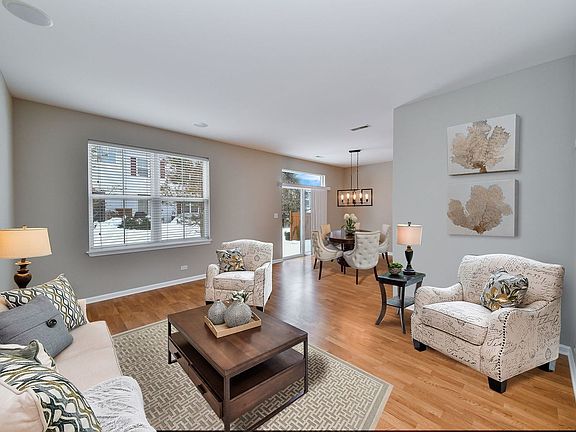 Updated, wonderful and move-in ready, 2 story Townhome in Harvest Hills with 3 bedrooms (rarely available), 2.1 baths plus Loft/Office space and 2 car garage! Remodeled Kitchen w/NEW Granite counters, newer refrigerator, stainless steel sink & hardware, 42 white cabinets & pantry closet ~ Unit features 9' ceilings, wood laminate flooring, white trim, 6 panel doors, upgraded light fixtures, and freshly painted throughout! New flooring in all bathrooms & Laundry room which also includes the Washer & Dryer ~ Surround sound wired in Living Room. Second floor with three spacious bedrooms and loft space. Master Bedroom has double closets adjoins private full bath! Bedroom 2 & 3 share second full upstairs hall bath. Two large windows in upper hall area provide beautiful natural light to the Loft/Home Office area has Ethernet or can use the flex space as an exercise or play area. All NEW HVAC System & Water Heater!! Also has Ecobee Smart thermostat & Water Softener! Roof is NEW! Steps to Harvest Hills park & playground, tennis courts, soccer fields, trails, bike paths and more! Close proximity to Otter Cove Aquatic Park! Enjoy shopping at Geneva Commons, dining at award winning restaurants in St. Charles & Geneva! Chicago Metra has two nearby convenient stations in LaFox & Geneva! Great St. Charles District 303 Schools!! Very Nice!