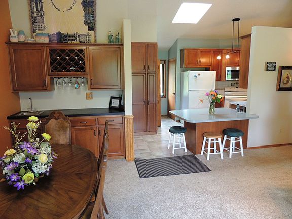 This PreInspected 2283 sq ft ranch home has 3 bdrms, 2 full baths, fully applianced kitchen, 1st flr lndry, cath.ceilings,2 sets of sliding glass drs to deck overlooking gorgeous yard! 3 car att. gar.& fin. lower w egress window, 2 other rooms plus fam rm w FP & brand new carpet. All this on 3.47 acres w pond! Furnace 2001,some newer windows,4 yr old roof.
