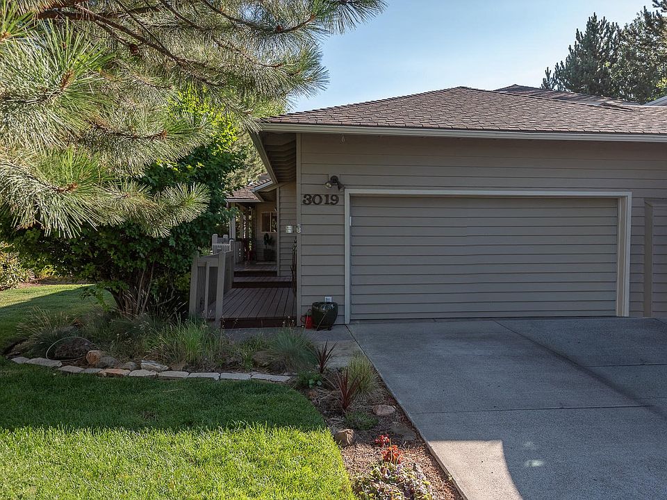 his is the One-Level home on River's Edge Golf Course you've been waiting for! A lovely Great room open floorplan, vaulted ceilings in main living area, dining room, kitchen, bar. Lots of wraparound windows lets in tons of light. Updated slate flooring, stacked stone fireplace, neutral colors, tiled bath flooring, A/C. Spacious master, deck access, soaking tub, separate shower. Laundry room w/ wash basin. 2-car garage + workbench. Big gated deck, peaceful view of mature greenery,and course.