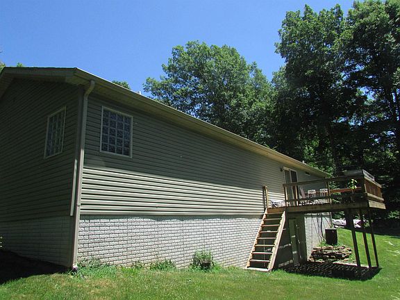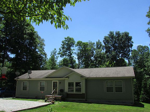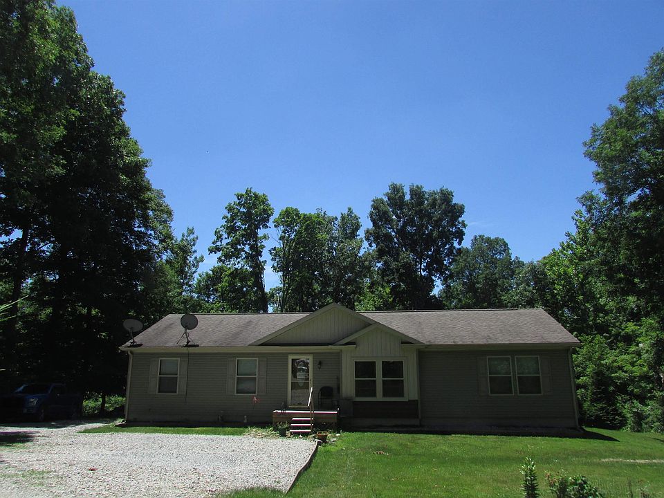 Secluded 3 bedroom, 2 full bath ranch with an open floor plan and split bedrooms that has 1630sf on the main level with a 1630sf unfinished walkout basement with 10 inch poured concrete walls. You'll love the private 22.6 acres peppered with cedar, hickory, walnut, white oak and fruit trees and the 25x15 lean-to. This rural home was built in 2014 with 6" thick walls that features a spacious great room, kitchen with 3 sided island, plenty of cabinet and counter top space, pantry, desk area and appliances that stay. Sliding door in the formal dining room leads to the 16x10 rear deck with no neighbors in sight. Master suite includes a walk-in closet, twin vanities, seperate makeup station, walk-in shower and oversized bath tub. 2 additional bedrooms share a full bathroom with a tub/shower combo. Main level laundry room is located just off the side entry door. Acreage has never been timbered. Don't miss the opportunity to own this picturesque property!