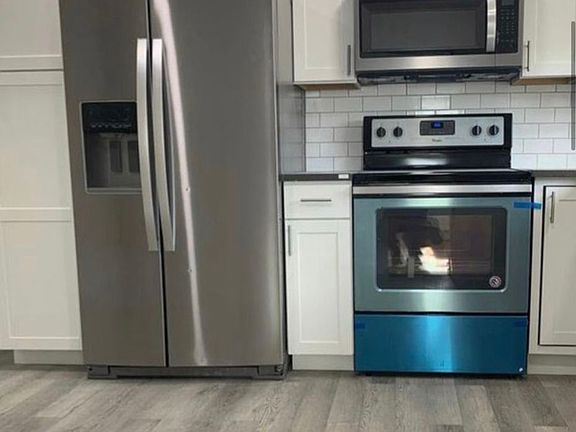 Stylish countertopsModern cabinetsCorner lotRoomy corner lotNew flooringStainless steel appliancesFully redone kitchen