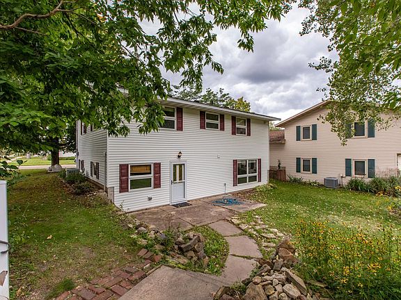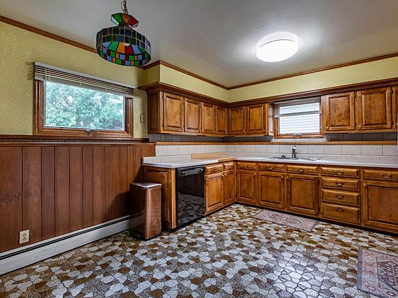 Pre-Inspected!This home may look dated but it is spotless inside and out!! Features 4 bedrooms(could be 5) 2 baths, walk out lower level, Oversized 2 car heated garage on large lot with privacy woods behind home. Unique layout with lower level kitchen area family room and all 4 bedrooms on upper level. Home has updated cabinets, newer siding, roof, windows, hot water heat with attic air. Move in and update as you can . Great combination of space, location, and layout. A rare find with exceptional potential!