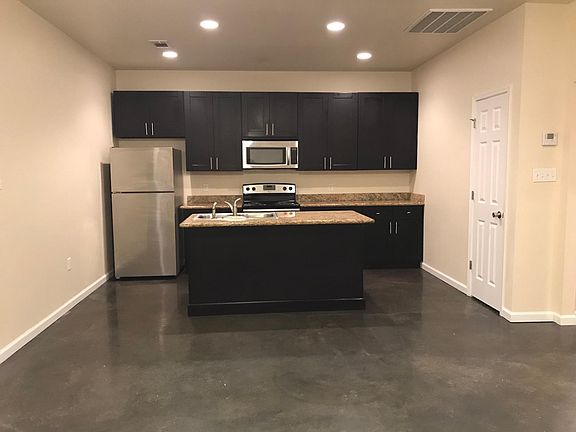Open floor planAcid stained floorsStainless appliancesGranite countertops
