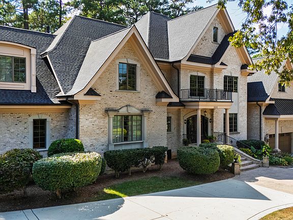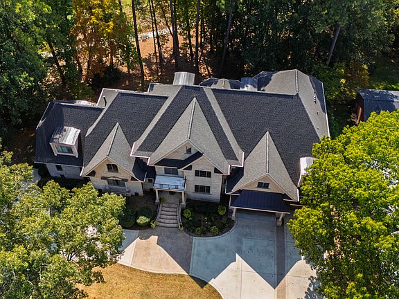 Welcome to 302 Annandale Drive, an extraordinary French Country estate in Cary's prestigious MacGregor Downs community. Designed by David Bennett of Triangle Residential Designs and crafted by long-time Triangle builder Cary Kasdorf, this residence blends the timeless elegance of European estates with modern functionality, creating a home equally suited for refined entertaining and comfortable everyday living. From the moment you arrive, architectural artistry is evident. The custom handcrafted steel front doors open to a dramatic foyer with African mahogany paneling, custom mahogany railings, and cast-iron pickets that were all crafted on-site. Handmade stained glass from Asheville, carved Indiana limestone sourced from the same quarry as the Biltmore Estate, and hand-finished details recall the craftsmanship of the Gilded Age. Every elevation of the home has been intentionally designed, offering beauty from all angles. This estate is truly 1 of 1. The formal dining room exemplifies this artistry with 18-carat gold leaf ceiling trim modeled after a historic downtown Cary landmark, mahogany wainscoting, padded silk wall coverings, and a 24-arm Italian crystal chandelier of nearly 1,200 individual pieces. Four gas fireplaces showcase unique surrounds of this home, from carved marble to stately limestone, adding warmth and distinction throughout. At the heart of the home lies the dual-island kitchen with cherry cabinetry, commercial-grade appliances, three dishwashers, and a butler's pantry. A separate catering kitchen supports large-scale entertaining. The breakfast room and screened porch with outdoor kitchen overlooking the 9th fairway, seamlessly blending indoor and outdoor living. The primary suite is a sanctuary with a hand-carved Verde marble fireplace, an octagonal tray ceiling inspired by Henry Flagler's White Hall mansion, and a spa-like bath featuring dual vanities, sauna, steam room, and a large walk-in rain shower adorned with Opal Onyx. The expansive dressing room offers custom-built-ins and a private coffee bar equipped with instant hot water. Entertainment and leisure are thoughtfully woven throughout: a pub room crafted from salvaged antique English bars, a billiards room with a coffered ceiling and a professional Gandy table, a home theater with daylight projection, a gym with golf course views, and a wine cellar with a tasting area—each space blending historic charm with modern convenience. An elevator large enough to transport a baby grand piano connects all four levels, while upper floors include versatile recreation and storage areas. Outside, tiled and brick verandas with Brazilian cherry ceilings provide year-round enjoyment. Views of the 9th tee and fairway of MacGregor Downs Golf Course are framed by mature hardwoods and pines, ensuring privacy and beauty. Membership at MacGregor Downs Country Club is optional, yet just steps away by cart or walk. Behind the elegance lies unmatched infrastructure: six HVAC systems, three hot water heaters, four 200-amp electrical panels, central vacuum systems, and hot/cold water spigots outside of the garage and on all porches. This level of forethought ensures both comfort and long-term durability. Every detail of 302 Annandale Drive tells a story of artistry, craftsmanship, and timeless design. This is more than a home—it is an heirloom estate designed to inspire for generations.