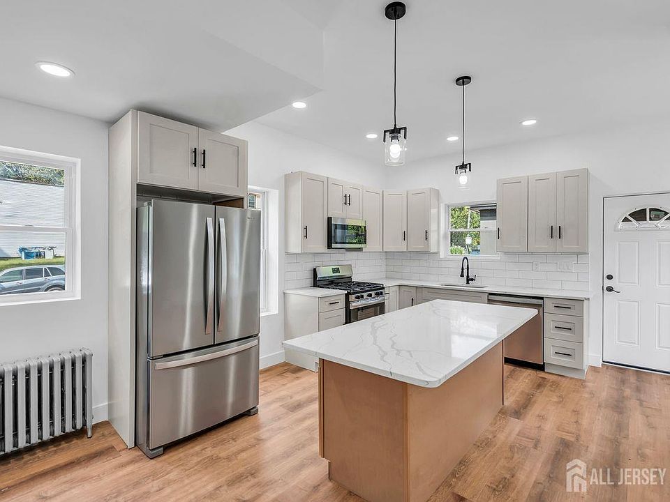Immerse yourself in timeless charm with modern luxury in this meticulously renovated historic property. Located in a vibrant neighborhood, this expansive 5 bed, 2 bath home blends classic character with contemporary conveniences, offering a rare opportunity for buyers in NJ and NYC. Step inside and your greeted with rich, warm hardwood floors. Bright lighting that enhances architectural details. Living room with cozy fireplace. Convenient half bath on first floor and separate formal dining room. Prepare to be wowed by chef's kitchen with new stainless steel appliances, ample cabinetry, and a huge island perfect for entertaining. Upstairs you will find second floor washer and dryer hook up and two floors with 5 spacious bedrooms spread throughout. Newly renovated full bath. This home is located on a expansive double lot providing an opportunity for future development and privacy for its new owner. Lastly, a three car garage for convenient off street parking. This property qualifies for up to $42,000 of downpayment assistance. All showings start Sunday 9/14.