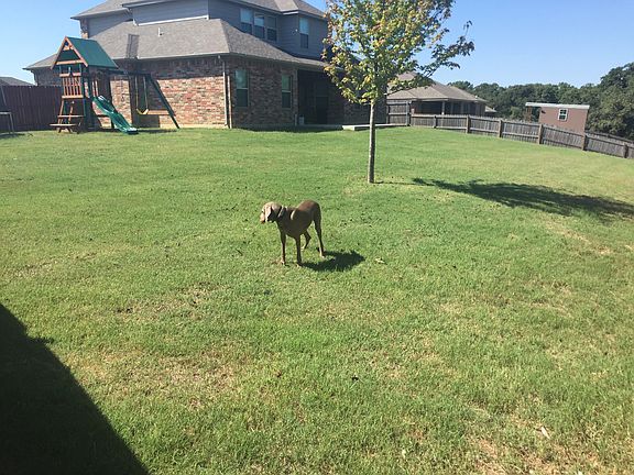 Pretty, large 4BR 2.5BA brick home in Hickory Ridge Add'n. It has an open floor plan for family time yet the kitchen island provides a little privacy for the kitchen. There is eating space at the large kitchen bar plus in the dining area. Stainless steel appliances with double oven. Granite counter tops in the kitchen and all bathrooms. The utility room has a large pantry: large enough for all of your kitchen staples, the week's grocery shopping, and all of your electrical appliances/pots & pans plus more. The master suite and an additional bedroom are downstairs. The half bath is located in the hallway by the second bedroom. The upstairs is accessed through switchback stairs and opens to a large family/media room. The two upstairs bedrooms are separated by a full bath. The dining area opens onto the covered back patio with extra concrete extending beyond the covered area. You can catch the sunrise from the east-facing area then enjoy the shade from the afternoon/evening sun. The back yard has had 430 yards of fill dirt with Geotech fiber fabric placed for erosion control.