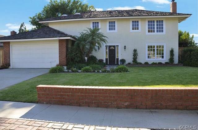 Beautifully maintained/updated home with amazing curb appeal in a highly desirable neighborhood. Entry opens to a large living room and dining room with stone fireplace. Family room opens to eat in kitchen with natural walnut floors. The kitchen has been recently updated. The master suite is large and luxurious with two separate vanities, granite and plenty of closets and storage. A large, double sized bedroom has the capability to be divided into two smaller rooms - there are two separate closets. New carpet, new designer paint colors, newer windows and doors, scraped ceilings, central heating/air, and more! Move-in ready in a charming neighborhood with no HOA or Mello Roos, located in Brea's award winning school district within walking distance to Fanning Elementary School. Come see this beautiful home with private backyard!