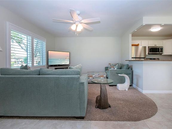 Under contract-accepting backup offers. Welcome to this Bright and Beautiful Condo in Kings Point. Whether you are looking for an escape from the harsh winters or looking to live the simple life, this one bedroom, one and a half bathroom home offers a retired golf course view and a covered parking space. As you enter through the new front door, you will notice how open and inviting it is. With the tile floors in the entry, kitchen and dinette, to the cozy carpeted living room and the plantation shutters on the Impact Windows throughout, there is nothing left to do. The refreshed kitchen has had the corner removed to open everything up and features quartz countertops, newer stainless steel appliances, updated cabinets and tile floors. The hallway has a custom closet and entry to the refreshed half bath with matching quartz on the vanity. The bedroom is big enough for a king size bed, dressers and offers double closets with "California Style" built-ins, as well as an en-suite bathroom and access to the Florida room. The Florida Room features a room with a new stacked washer and dryer, double doors to allow golf cart storage and a Private View. Improvements include: Impact Windows, Plantation Shutters, Painted Inside and Out, New Appliances including Stacked Washer and Dryer, Kitchen, Electric Panel, Tile floors, Bathrooms, Plumbing, Closets and their Doors. If you are looking for an updated, move-in ready, quiet place to call your own - This Is It! Kings Point is a 55+ community with 24/7 guarded entrance, 2 Clubhouses each with an indoor and outdoor pool, cafes, a bar in the South Clubhouse, craft rooms, gathering rooms, billiards room, woodworking shop, tennis, pickleball, lawn bowling, fitness and so much more. There are tons of clubs and social activities, and transportation to the clubhouses. The monthly fee covers: the building exterior, structural insurance, premium cable, internet, pest control, escrow reserves fund, ground maintenance, private roads, recreational facilities, roof repair and replacement, security, water and sewer. Sun City Center is a great central location to Tampa, the beaches, airports, the arts and professional sporting events. Call for your Private Showing!