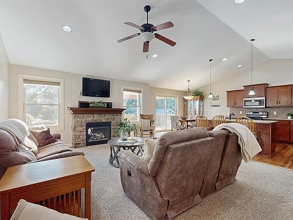 Seller is offering 1% Interest Rate Buy-Down for 1 year as well as a home warranty to help give the new home owner peace of mind! Enjoy the best of small-town living with easy access to Ames, Ankeny, & Des Moines. This move-in-ready home boasts 2642 sq ft of living space, 5 bedrooms, & 3 bathrooms, perfect for growing families. Stunning views of green space & ball fields, plus a wooded area behind home with lots of trees, help create a peaceful oasis. Relax on the covered deck or enjoy the nearby park. The open floor plan features a spacious kitchen, a large laundry room, and a 3-car garage. Location is key! Just 3 blocks from Ballard Golf Course, with quick access to I-35 for easy commutes to Ames (including ISU events), Ankeny, & Des Moines. Benefit from a 1% interest rate buy-down to help navigate the current market. This fantastic neighborhood and well-maintained home offer the perfect place to raise kids in a safe and welcoming environment. Don't miss this opportunity to experience the best of both worlds!