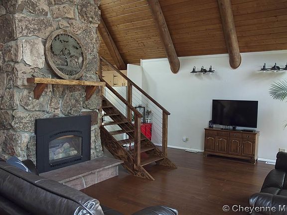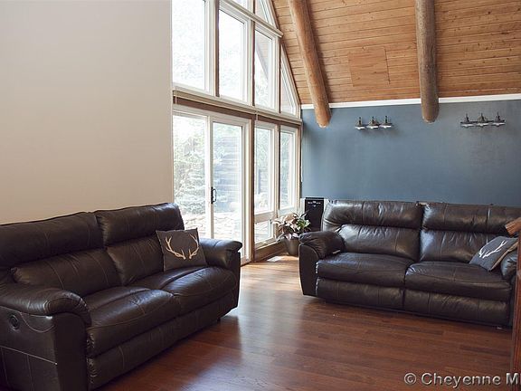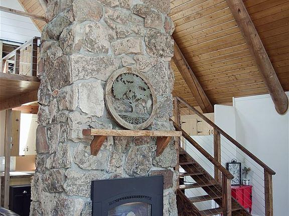 3 bedroom 2 bath A-frame home located on Corthell Hill. Some of the amazing features of this home are a new staircase, exposed beams, high vaulted ceilings, & nice skylights. House feels very cozy with a floor to ceiling moss rock fireplace with two inserts. Some updates are the new flooring, a new staircase, making the loft area a private bedroom with a barn door, & knocking down a wall for a more open floor plan. This house is beautifully landscaped with a fenced backyard. It is perfect for entertaining
