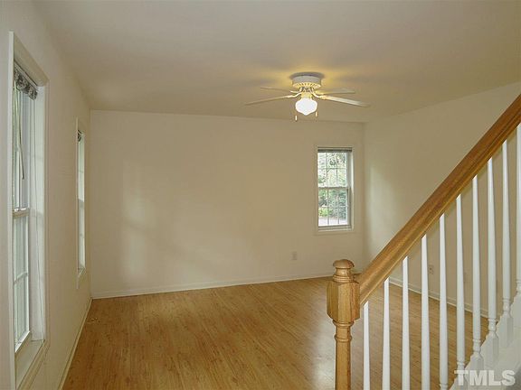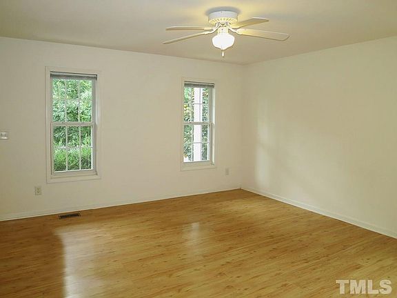 Carrboro bungalow. Living room has hardwood style laminate floors & ceiling fan. Large kitchen combines with the dining space all with wood style laminate floors. Bay window in dining area. Pantry, recessed lighting. Kitchen appliances, washer/dryer included. 2 bedrooms on 1st share Jack & Jill bathroom. 2 bedrooms & bathroom up. All bedrooms have ceiling fans, carpet, phone & cable hookups. Patio in back. 1 indoor pet considered w/fee, approval. $15/mo filter fee.
