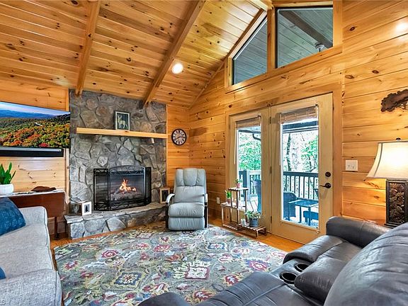 Great cabin with an open floor plan, hardwood floors throughout, gas log fireplace, and tongue & groove wood walls! Large kitchen and dining area. The primary bedroom suite is on the main level with its own bathroom with a walk-in tile shower. Also has a half bath on the main level. Covered back porch and open deck to enjoy the view. The lower level has a laundry area, a bedroom has its own bath. The family room has a gas log fireplace, wet bar, living area, and patio. Generator. Outbuilding. Also included is a separate view lot, with a viewing deck/Gazebo. Buck Mountains is a gated community offering a community center, pond, hiking trails with waterfalls, & ATV/UTV trails. Front of the mountain location. Located near the Blue Ridge Parkway, Boone, Blowing Rock, and Ski Resorts.