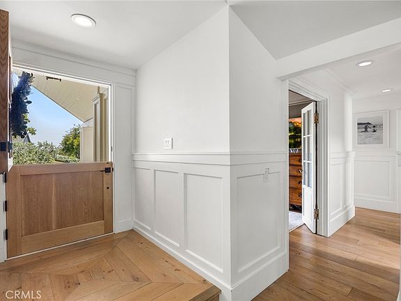 This stunning single-story 4 bed, 2 bath home blends luxury and comfort on a private corner lot. Featuring European white oak flooring, a remodeled chef’s kitchen with high-end Thermador appliances, custom white oak French windows, and designer finishes throughout. The primary suite includes a La Cantina door for seamless indoor-outdoor living, a limestone spa-style bath, and custom closets.