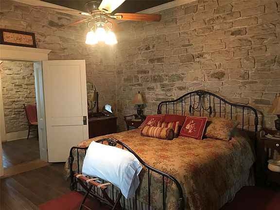 Own part of Texas history with this quaint and historical three bedroom two bath rock house built in 1874 and beautifully restored. The original rock walls, woodwork, hard wood floors, and bead board ceilings make you feel as though you have stepped back in time. It is currently a bed and breakfast but could be used for horse motel or a personal retreat. This lot has wonderful, mature live oak and pecan trees that shade much of the yard and make it nice to sit on the porch and enjoy in the evenings. There is a seasonal creek at the back of the property and has a 3 stall barn and tack room.