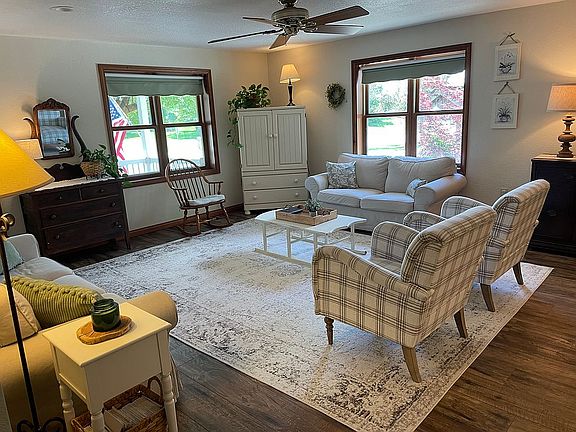 Immaculate 4-Bedroom Home with Upgrades Galore *For Sale by Owner – Address: 302 East US Hwy 50, Cannelburg, IN 47519 Welcome home to comfort and convenience! This lovely home located in the Barr Reeve School District has everything you need. This newly updated home has 4 bedrooms with 3 full bathrooms and sits on 1.68 beautiful acres. With over $100,000.00 in upgrades between 2022-2024, every detail has been meticulously crafted for your enjoyment. Upon entering, you'll be greeted by an open concept living, dining, kitchen area. All bedrooms and 2 full baths are located on the main floor. Step outside onto the attached screened porch (12’ X 24’) with outdoor carpet and slide windows, ideal for enjoying your morning coffee or hosting gatherings with friends and family. This home boasts three water sources: city, cistern, and a well with a pump, ensuring reliability and peace of mind. Plus, with two heat sources - a natural gas furnace and a wood-burning stove - you'll stay comfortable year-round while keeping energy costs in check. A spacious downstairs family room features a cozy wood burner perfect for chilly evenings. Possibilities abound with this large room, as it provides plenty of natural light, a full bath, and its own entrance. Features include: • 2,315 sq ft of living space - plus an additional 1,015 sq ft of unfinished cellar space with a storage room for canned goods with a separate entrance • Professionally waterproofed cellar by LAN • New standing seam metal roof on all buildings including the pump house and garden shed • 3-car detached garage (30’ X 40’) with heat, AC, attic storage, and two new carports (30’ X 15’) connected • Large concrete driveway for parking? • Full electric in the garage with lights, plenty of outlets, a 30amp RV hookup, and a designated 220 outlet for a large air compressor • New sidewalk and patio with a retaining wall for backyard enjoyment • Garden shed (14’ X 24’) with a new roof, wooden deck ramp, windows, skylight and roll-up door • Brand new whole-house HVAC system installed in August 2023, with all HVAC ductwork professionally cleaned in 2021 • Upgraded lights inside and outside of the house and garage, including two new garage door openers • Option to buy existing furniture and washer and dryer at a discounted price • Septic tanks cleaned out and inspected yearly, with the last service in March 2024. • Brand new water heater installed in April 2024 Don't miss your chance to own this meticulously maintained and upgraded home. Schedule your private tour today and experience country living at its finest! It can be yours for $379,900.