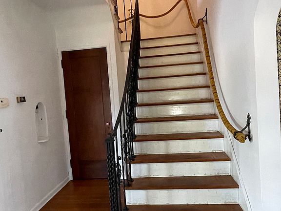 Bring your offers because it's time to make this unique home all yours! Plaster walls upstairs and down have had repairs and they look gorgeous! It has 3-4 bedrooms and sits on the corner of Main Street and Spring Street in Greenfield. The spacious, unique entry welcomes you into this one-of-a-kind home. Main floor boasts the formal dining room with hardwood floors and French doors to porch. Kitchen with swinging door and breakfast nook with tiled walls and arched opening. Metal kitchen cabinets and single door pantry. Refrigerator and gas range will remain. Dishwasher in place, but non-functional. Laundry off kitchen. Large 28x15 living room with wood burning fireplace, French doors to porch, hardwood floors and plenty of windows! Just off the living room through the iron gates is your sunroom complete with a fountain. One full bath down and an extra fourth possible bedroom/office/music room ... make it your own room. Wood staircase with wrought iron rails lead you to the upstairs where you'll find the 11x28 primary bedroom with built-in vanity and closet on either side. "Fireplace nook" is the perfect spot for however you'd like to use it. Off the primary bedroom is a 15x5 alcove/sleeping porch area for extra storage space or sitting area. The upstairs bathroom with separate area housing toilet, plus tub and nonfunctional tiled shower. There are two additional bedrooms; all bedrooms have had carpet removed to showcase the hardwood floors. Basement has shelf storage room, plus large tiled floor area with wood burning stove. High efficiency furnace installed 2023. This truly is an architecturally unique home with endless possibilities. Carport is in back of home. Some repairs and updates are needed ... exterior stucco, windows are original, there's no AC. Prefer cash buyer. Prefer 2-4 hours notice for showing approvals.