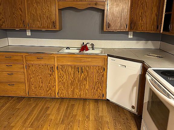 2 bedroom 1 3/4 bath home with possible 3rd bedroom in the basement. 2 large closets in the master bedroom. Coat closet and linen closet lots of storage. Full basement. Attached oversized garage. Large corner lot. Some appliances stay with the home.