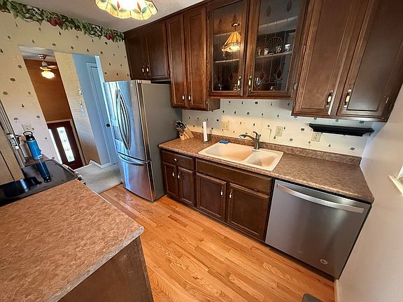 Cozy 3 bed 2 1/2 bath home with full finished basement perfect for a man-cave area, play area or just extra space, complete with a gas fireplace and updated 1/2 bath. It boasts a large master bedroom with full bath, kitchen with stainless steel appliances, a sunroom to enjoy the outdoor space in colder temps that also has removable windows. A large deck perfect for entertaining, combined with a fully fenced back yard makes this a perfect play area for kids and pets with a partial privacy fence. A new roof is being installed with a transferrable warranty for the new owner. Don't miss seeing this house today with a flat driveway that pulls directly into the clean 1 car attached garage. This gem is awaiting a new owner!