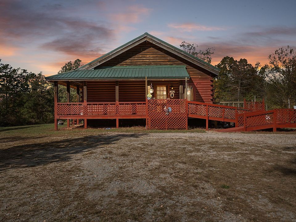• Small pavilion + massive 40'x60' covered pavilion with concrete floor, stage lighting, and seating • Private well serving the log cabin; 700-gallon spring reservoir feeding all other facilities • Two septic systems (700 gal + 1,500 gal)