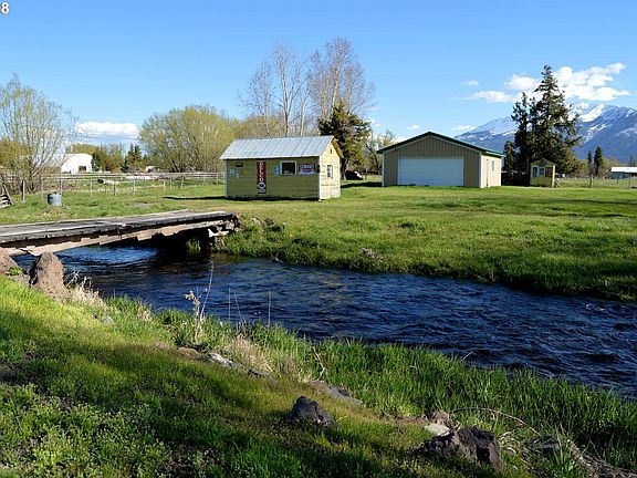 Wallowa River in your backyard! Approximately 164 feet of river frontage runs through the southern portion of this property. Enjoy this cozy 3 bedroom, 1 bath home. Great mountain views. Entertain or spend time in solace from the covered patio. Irrigate the pasture with 2 newly installed pumps and keep the grass green for your horse. Plenty of room for projects in the greenhouse or either one of two large garages.