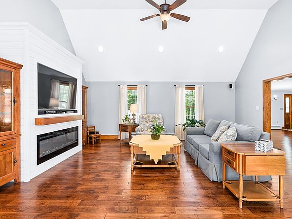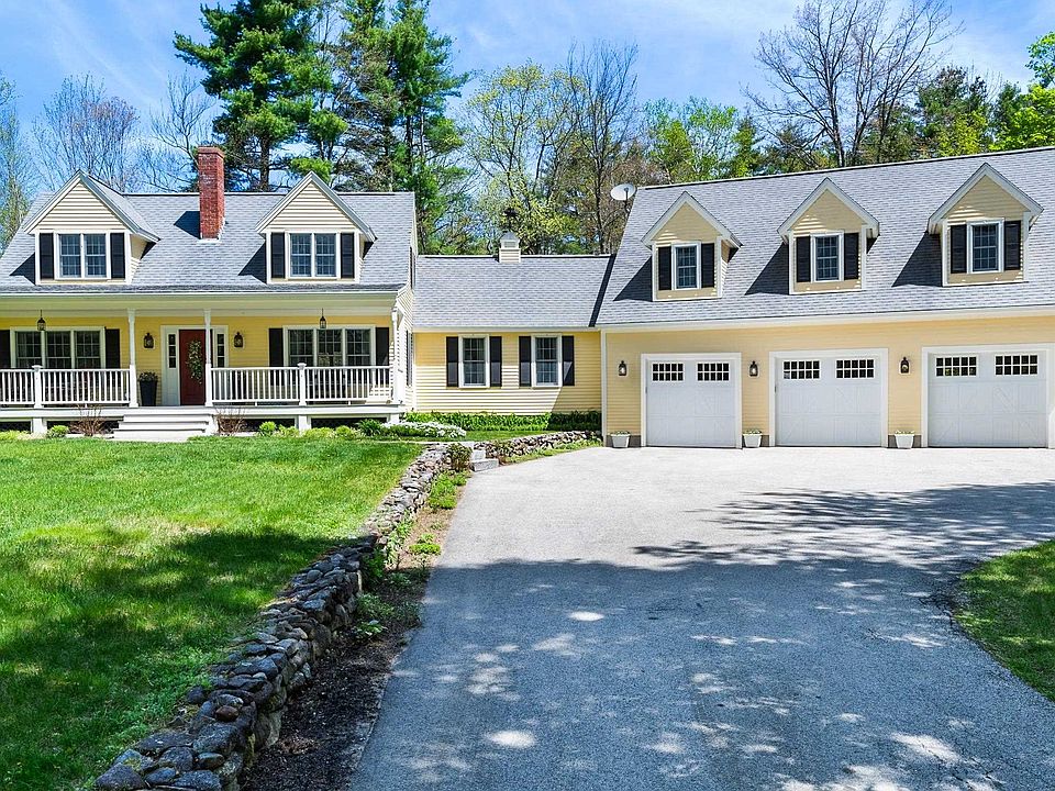 Special Home that has been lovingly maintained and is in pristine condition! Classic country Cape with farmers porch, professional landscaping, sets back from the road-gorgeous curb appeal! This home has so many features, let's begin with the exceptional heated 3 car garage with race deck flooring and the dream entertainment room that comes fully furnished, let the good times roll! Perfect family room has cathedral ceilings, recessed lights, custom built-in entertainment system with electric fireplace for added ambiance. Center island kitchen open to the family room with custom built Birch cabinets, farmers sink, granite countertops and stainless-steel appliances. Plus, 1st floor primary bedroom ensuite, 3/4 bath has been updated. Turned staircase leads to (2) two large secondary bedrooms and full bath. There is also more finished living space in the basement with 2 more rooms (possible playroom, office/study) and large laundry room. Top quality is an understatement in this amazing home with hand scraped solid oak flooring throughout, solid 6 panel wood doors, Anderson vinyl clad wood windows and doors, cedar clapboard siding, newer architectural shingled roof, composite decking and railings on the farmers porch and massive 2 level deck that overlooks stone walls, 2.4 acres of wooded privacy and a large shed/garage with cement floor. WOW-what a house, impeccable inside and out! Come and see for yourself!