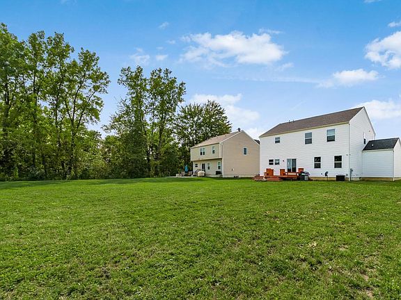 This immaculate home was built in 2018 and is nestled towards the back of Leafy Dell development. This residence is placed on a large lot with a tree line running along the rear providing a great sense of privacy. Enjoy the view on a recently built, custom deck great for entertaining. 3 car garage. Step inside and find some of the best Moronda Home finishes available including: double doors opening into the master bedroom with tray ceilings and siting area, large kitchen island overlooking the open floor concept living room, two french doors leading into a private office, and finished basement with and rough in plumbing for future bathroom. Large storage area.