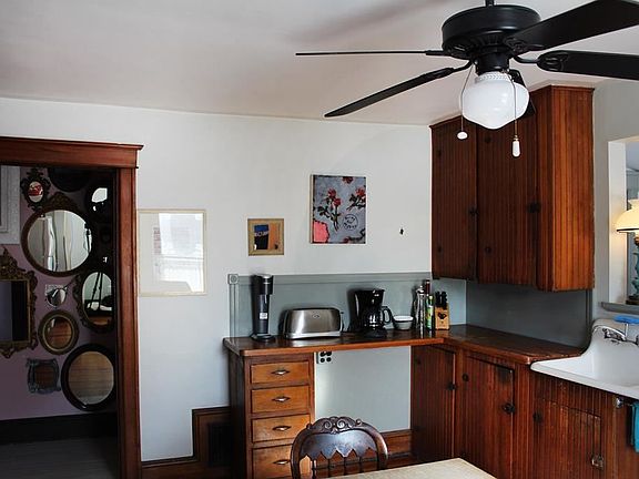 Fabulous home w/1st floor currently used as an art studio/gallery. Wide open space waiting for your design - home office, gallery, studio, or many other possibilities! Second floor offers 2 spacious bedrooms w/full bath, kitchen, dining area & laundry. Full of character & charm. Newer roof & gutters. Separate electric & gas for each floor. Garage was converted to a loading dock with workshop area. Full basement for storage. Home Warranty included. Must see!