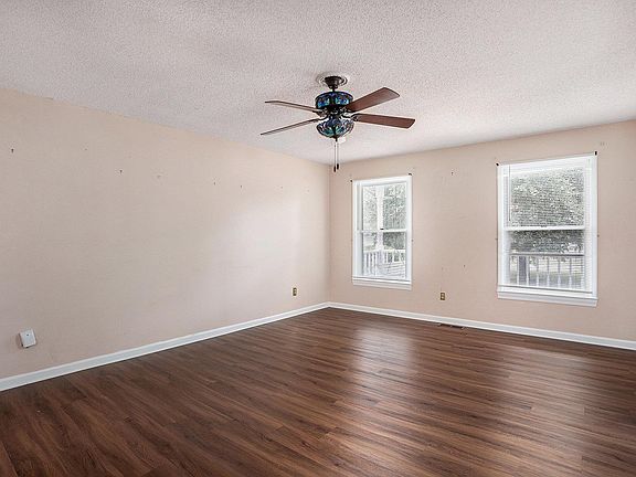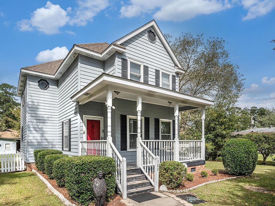 Welcome home to this charming 3-bedroom, 2.5-bath, two-story home nestled among mature trees on a spacious lot. The large front yard features a classic front porch complete with a porch swing—perfect for relaxing evenings. In the backyard, you’ll find a fenced area ideal for pets, complemented by a vintage white picket fence and vinyl fencing surrounding the rest of the yard. A large storage shed sits at the rear of the property and offers great potential for additional storage or workshop space. Inside, the home welcomes you with a bright entryway and a roomy living area filled with natural light from the many windows. The adjoining dining room provides plenty of space for gatherings and could also serve as a home office or possible fourth bedroom. The kitchen offers stainless steel appliances, warm wood cabinetry, and a cozy breakfast nook with a window seat overlooking the backyard. A spacious laundry room with washer and dryer and direct access to the backyard adds convenience. Upstairs, you’ll find two generous guest bedrooms and a full bath. The primary suite features dual closets and a another full bathroom. Throughout the home, laminate flooring adds both style and easy maintenance. This home combines charm, comfort, and functionality—ready for its next chapter! Some images are virtually staged.