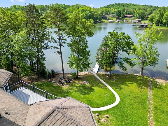 FULLY FURNISHED & PRICE IMPROVEMENT WITH MOTIVATED SELLERS..This exceptional lakefront home on Watts Bar Lake is your invitation to embrace life at a slower pace, surrounded by nature, friends, and family. Thoughtfully designed across three expansive levels, this home is a true haven for relaxation, recreation, and memorable gatherings—all nestled in a peaceful cove just off the main channel of the Tennessee River, with year-round water access. Conveniently located just 75 minutes from both Chattanooga and Knoxville, this spacious retreat was purposefully built as the ultimate multi-family vacation destination. The main level boasts an open-concept layout centered around a grand, fully-equipped kitchen, complete with natural stone countertops, rich wood cabinetry, and stove with built-in air fryer. A wine fridge stands ready to chill your favorite bottles, and the adjoining dining area-wrapped in windows—welcomes up to 12 guests to dine with stunning lake views. The heart of the home flows seamlessly from the kitchen and dining areas into the warm and inviting family room, where a wood- burning fireplace anchors cozy gatherings. The adjacent screened-in deck is a favorite retreat, offering serene views across the lake—views that stretch across the entire back of the home on every level. Upstairs, two loft-style balconies overlook the main living area, keeping the whole home visually and emotionally connected. The lower level is an entertainer's dream, with soaring 11-foot ceilings, space for games like air hockey and pool, and media-ready features for movie nights. Step outside onto the lower patio, outfitted with an outdoor TV connection, an 8-person Dynasty Radiance hot tub, and an infrared heater for chilly evenings. Prefer the great outdoors? A few steps take you to the lakeside firepit- ideal for starlit