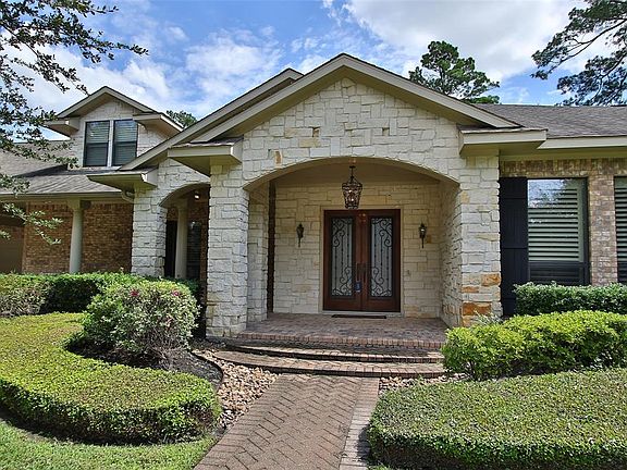 Incredible, one of kind one-story home located on a large cul-de-sac lot with unbelievable custom features! Fabulous stone arch way over double front doors opens to a grand entry stating this is a very special home! High end details throughout! Unique split floor plan! Huge great room with an amazing chef's island kitchen and breakfast room at one end opens to a large sitting area plus dual sided stone fireplace flanked by double French doors to a spacious gameroom with walk-in wet bar & full bath. Wonderful master suite features tray ceiling, wood floors, plantation shutters, updated spa-like bath and a walk-in closet you must see to believe! Beautiful screened in brick porch nearly 800 sq. ft. with kitchen, fireplace & two living areas over looking backyard paradise with pool & spa. Approximately 400 sq. ft. built out over the garage: bedroom or quarters full bath and more storage! Opportunities like this do not happen all the time - make your move now!