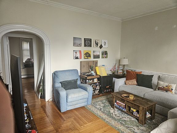 Hardwood floors and historic period details give this apartment a great feel and character.