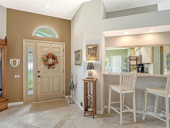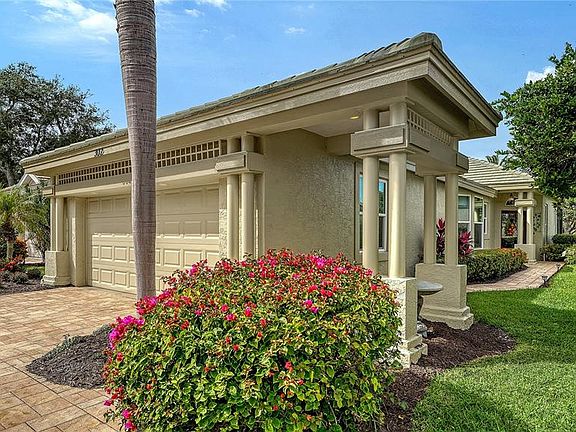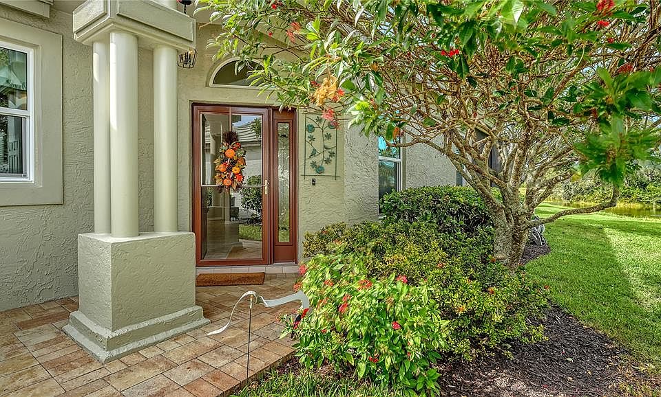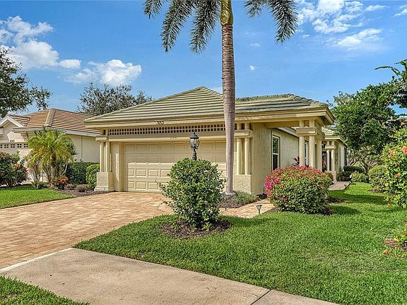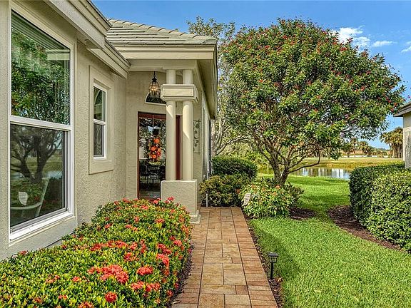 MUST SEE THE FABULOUS POND AND GOLF COURSE VIEW from this charming home located in member-owned Venice Golf and Country Club. Enter through the main gate and you will be impressed with the canopy of oak trees, mature landscaping, and numerous ponds within this geo-Certified Audobon community. This 3-bedroom, 2 bath home offers the buyer an opportunity for an IMMEDIATE GOLF MEMBERSHIP. With only 360 golf memberships in a community of 579 homes getting a TeeTime is never a problem. Enter the home into the foyer and living room with sliding glass doors to the lanai and you will be struck with the view of the pond and the 17th fairway beyond. There is a separate dining room for entertaining guests. The efficient kitchen with breakfast bar and stainless-steel appliances has plenty of cabinet space, a pantry, and a sunny breakfast area with a bay window. Ceramic tile flooring is installed on the diagonal creating a continuity to the main living area. The primary bedroom has a custom closer, sliding glass doors to the lanai, and a private updated bath with dual vanities, jacuzzi tub, and separate walk-in shower. The second and third bedrooms and guest bath are separated from the primary for privacy when entertaining overnight guests. There are numerous UPGRADES including HURRICANE WINDOWS, a newer roof, newer pavers, and newer lanai cage with panoramic screening and retractable awning with light. This home is located in one of the five maintained neighborhoods with a separate HOA which provides lawn care, mulching, tree and shrub trimming, bi-annual roof cleaning, irrigation, and neighborhood pool conveniently located just across the street! Live worry free while you enjoy all the amenities in VGCC. Members enjoy a very vibrant social life with access to numerous activities including tennis, bocce, book clubs, bridge, mahjong, and more. Dining options include both casual and formal venues in the recently renovated clubhouse overlooking the 18th green, complete with a bar, extensive covered outdoor dining space, and a fire pit where members meet on colder evenings. There is also a spacious Wellness Center with state-of-the-art equipment, fitness classes, and a physical therapist on site. VGCC is located five mikes from downtown Venice and Venice Beach, and only twenty miles south of Sarasota and offers an exemplary Florida lifestyle in a secure, gated environment. MEMBERSHIP IS MANDATORY.