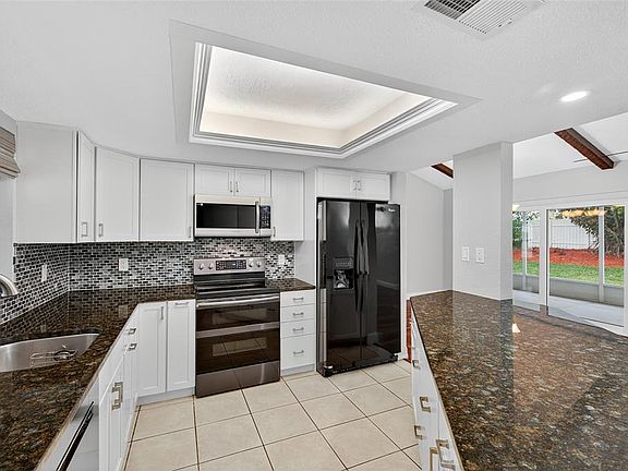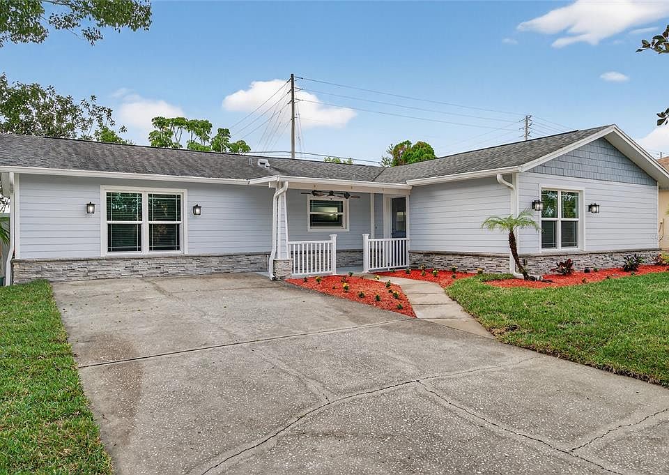 Welcome to your dream home in beautiful Tarpon Springs! This charming 4 Bedroom, 2 Bath home is ideally located across from the Innisbrook Golf Resort entrance and just a short bike ride from the Pinellas Trail. You’ll love being only minutes from downtown Tarpon Springs, the Historic Sponge Docks, Palm Harbor, Dunedin, and the Gulf beaches. From the moment you arrive, you’ll be drawn in by the attractive curb appeal, featuring a remodeled exterior, coastal colors, and a charming front porch with ceiling fans—the perfect spot to relax and enjoy Florida’s breezes. Inside, the updated kitchen features soft-close cabinetry with pullout shelves, granite countertops, modern appliances, and upgraded lighting. The open layout connects seamlessly to the Family and Dining area, showcasing vaulted ceilings and Brazilian cherry hardwood floors. Triple sliding glass doors lead to a spacious 9x28 screened-in patio and a paved open patio—ideal for cookouts, gatherings, or simply unwinding outdoors. The versatile Den/Bonus Room can easily serve as a home gym, playroom, or media space. One of the front bedrooms features built-in shelving, perfect for a Home Office or Study. Both Bathrooms include updated cabinetry, showers, fixtures, lighting, and mirrors. The neutral interior paint provides the perfect backdrop for your personal style, while new LVP flooring adds durability and warmth to all four bedrooms. Additional upgrades include PGT hurricane impact windows and sliding doors, a Reme-Halo Whole House Air Purifier and UV Lights installed in HVAC system. This home truly has it all—style, comfort, and an unbeatable location. Don’t miss your chance to make it yours. Schedule your private showing today! LET'S GET IT SOLD!!!