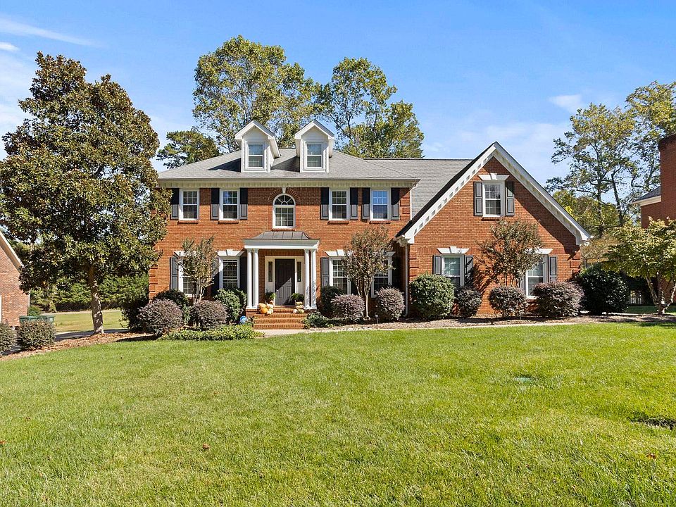Welcome to 302 Ledgewood Way! This beautiful custom-built 5-bdm, 3-bth, 2,950 sq. ft. all-brick home is in the highly sought-after Stone Creek neighborhood within the Pebble Creek Community, perfectly situated on hole two of the Linkside Golf Course. From the moment you arrive, the curb appeal and meticulously maintained landscaping make you feel right at home. Inside, a welcoming two-story foyer leads to a comfortable living room, a downstairs bedroom, and a full bath. Toward the back of the home, you’ll find a spacious kitchen with granite tops, formal dining room, and a breakfast nook that opens to a cozy living area featuring custom built-ins surrounding a brick fireplace. From there, enjoy easy access to the newly built covered deck, stone grilling patio, and spacious backyard making it ideal for entertaining family, friends, and pets. Upstairs, the primary suite provides a large bedroom, walk-in closet, and a beautifully updated bathroom with a double-sink vanity, custom walk-in shower, and a separate soaking tub surrounded by built-ins. Three additional bedrooms with generous closet space and another full bath complete the second floor, with the largest bedroom accommodates flexibility as a media room, or flex space. Notable updates include a brand new roof, double pane-windows, and one newer HVAC unit, ensuring comfort and peace of mind. This home perfectly blends timeless craftsmanship with modern updates in one of Greenville’s most established and desirable golf course communities.