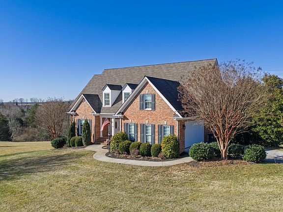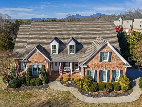 This stunning custom-built brick home is situated on a 3.7-acre parcel with mountain views. Arched doorways, transom windows, French doors, floor to ceiling windows, crown molding, and custom cabinetry are a few of the design upgrades. Main floor features a grand primary suite with walk-in-shower, whirlpool bathtub, and a cathedral ceiling with accent lighting. Open in design with a centrally located great room, separate dining room, adjacent kitchen with granite counter tops large island, and high-end appliance. A second bedroom/office, and access to the screened porch and massive deck complete the main floor. Second floor features a loft/TV area with a Jack and jill bathroom and two generous bedrooms. The walk out terrace level has been beautifully finished with a kitchenette, family room, and full bath.