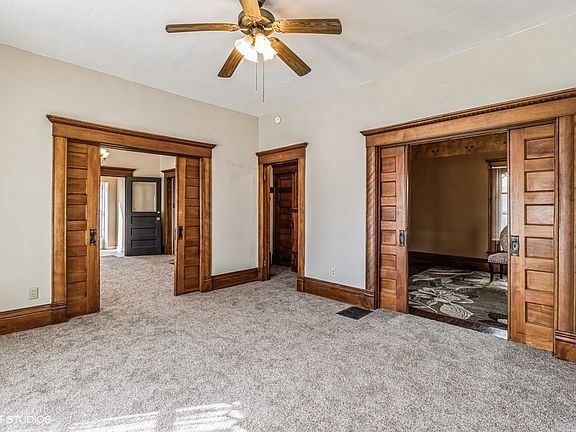 Old town charm at it's best with this gorgeous 1900, 4 square home, A flare for Farmhouse, Antique and Victorian, design cravers. On a corner lot, so stately, newly painted. Wonderful front porch, plenty of room for a swing. Original beveled glass front door and a fun tour from the past but so much new. The two front windows are bottle glass. The original windows are still remaining in the living room and dining room with great storms to make them efficient but part of the Charisma. Two sets of working pocket back doors. One from living room to dining room, and one to the Piano room with original hardwood floor and original stenceling. A true jackpot to have, just beautiful. New carpet throughout. New kitchen w LPV floor, Maple cupboards, new lighting, sink, gorgeous appliances, all new. Stainless steel, frig, dishwasher, electric range and microwave. Off the kitchen is a 1st floor bath with a handicap shower, new stool, flooring, also the laundry hookups. You have the pleasure of seeing the original built in china, all the original wood work, even upstairs. Upper level you will find a true treasure the original hardwood lovely staircase, 3 wonderful size bedrooms and a full remodeled bath with new floor, toilet, vanity and mirror. Stairway to a finishable 3 level attic. The basement is unbelievable. new waterproofing. sheetrock, lighting, Newer furnace, CA.24x24 det garage.